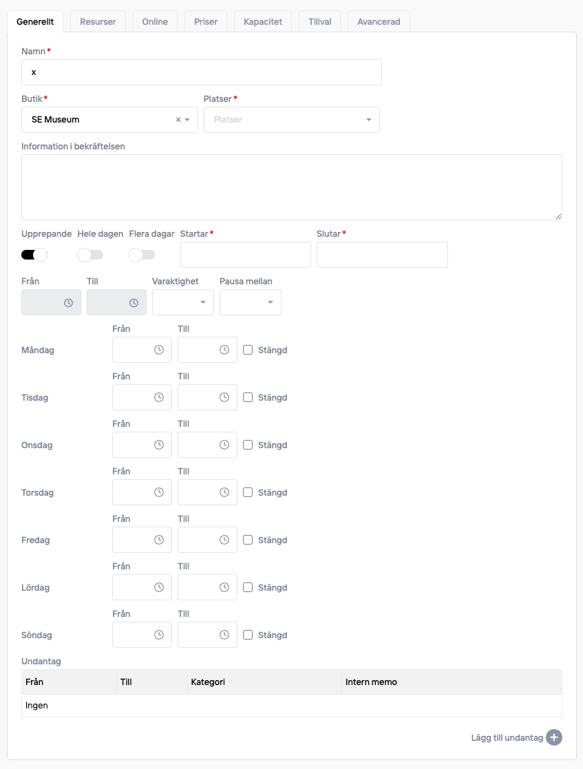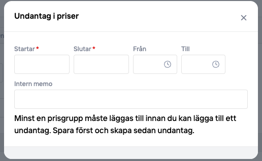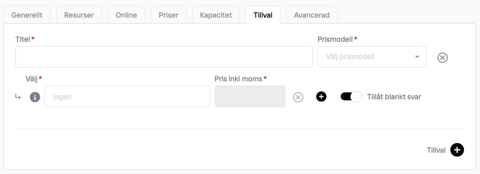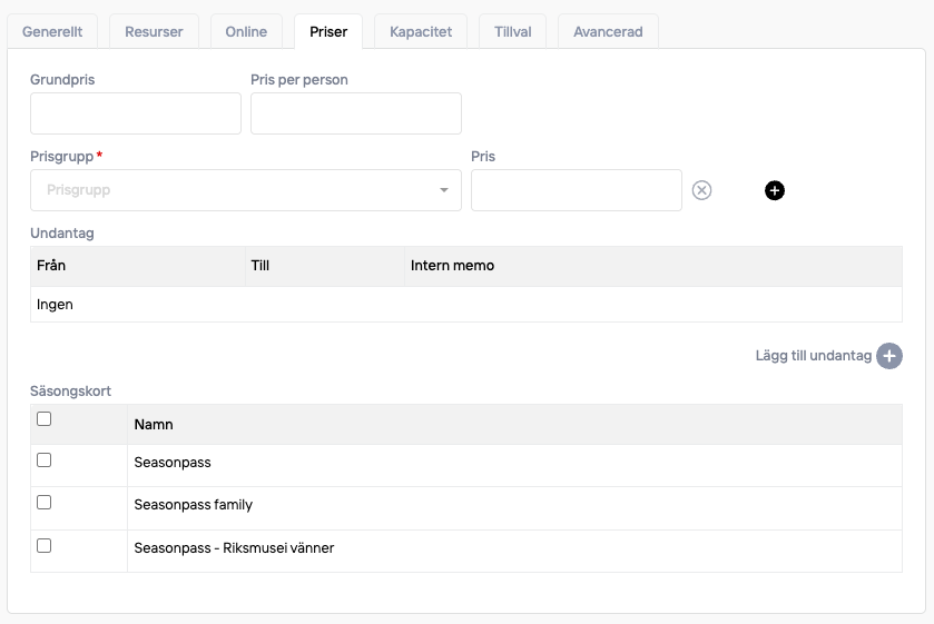 • Price group: Select the price group and enter the price if it should deviate from the Price per person. By pressing + you can add as many price groups as you want.