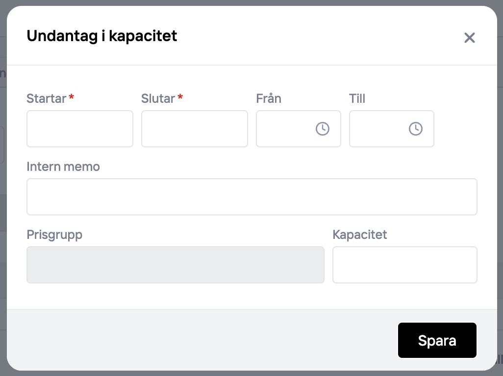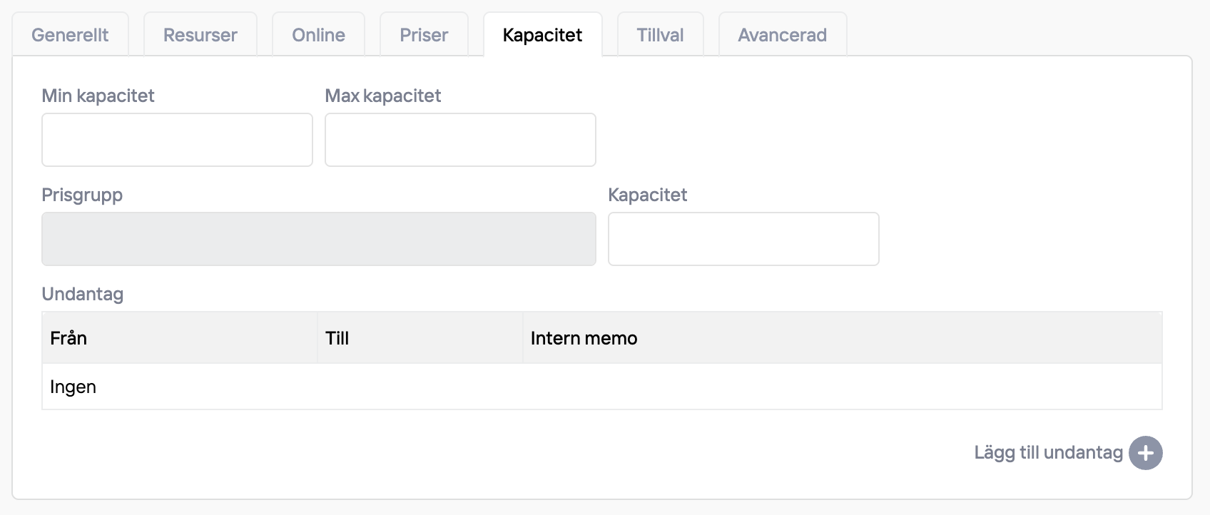 • You can add exceptions to the capacity. These will apply per price group, and not on the total capacity of the event.