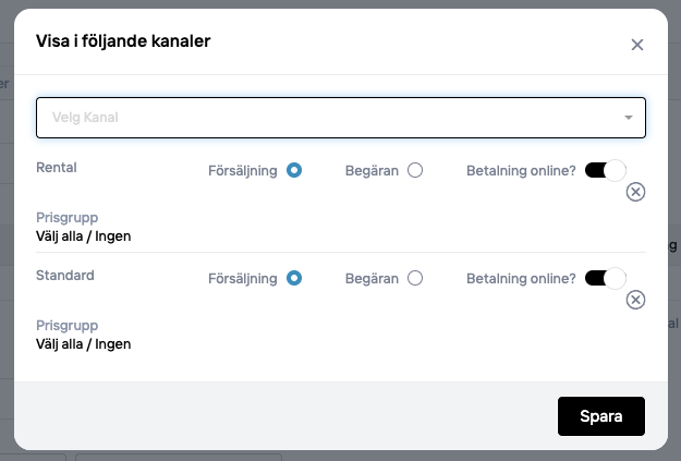 For each channel, you can choose between Sales and Inquiry. Inquiry means that the order becomes an email, while sales becomes an actual order that is automatically registered in the system and reserves capacity and resources.