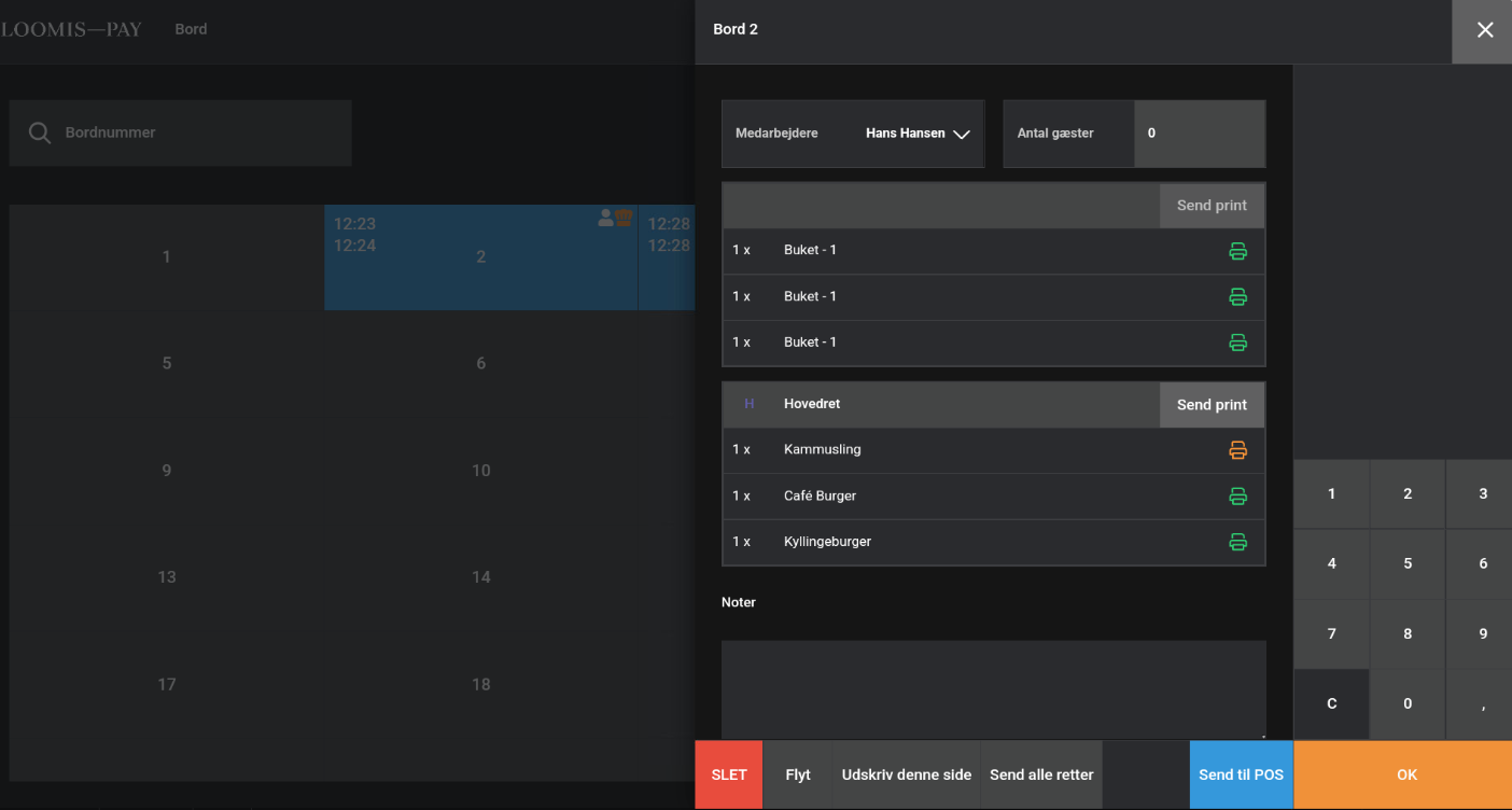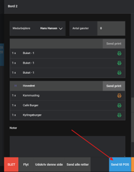 If a kitchen receipt is used, it will be printed when the sale is registered on the table. If you have a dishes setup, you can decide when the order should be sent to the kitchen printer.