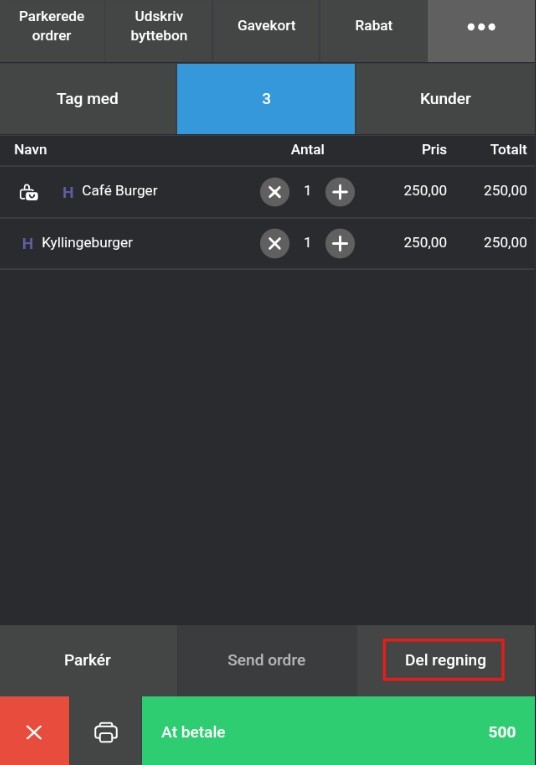 When you are ready to settle a table, you can choose to split the payment. Splitting the payment allows each guest to receive their own receipt for what they pay.