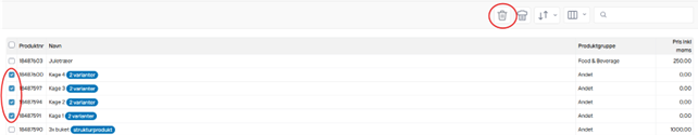 If you want to delete more products at once, you can check multiple boxes and press the bin.