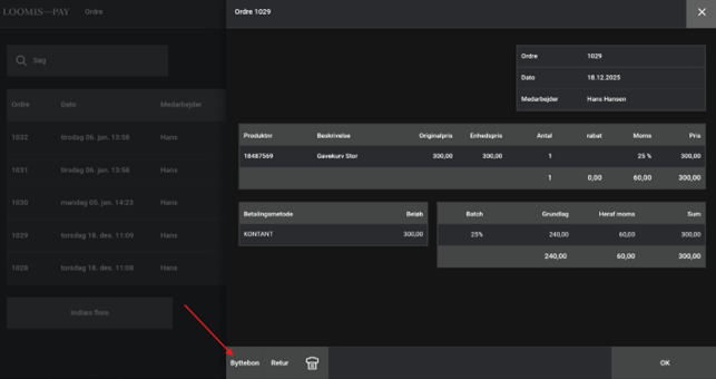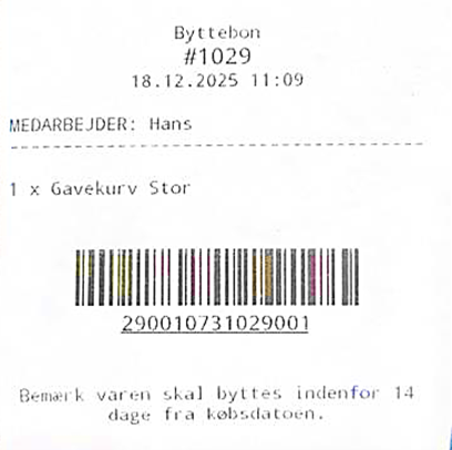 Note: The “Exchange voucher” is not a giftcard. If the total amount is not used a new bon will not be printed. Please see How do I create a credit voucher?