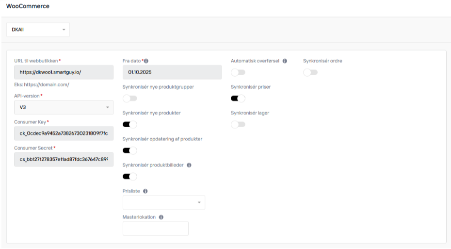 Synchronize orders - On/Off: Determines whether orders from WooCommerce should be created as customer orders in Loomis Pay.