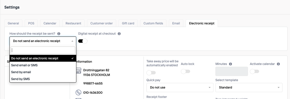 If you would like to be able to send digital receipts by email or SMS via the POS, you will need to enable this in the Portal under System > Settings.