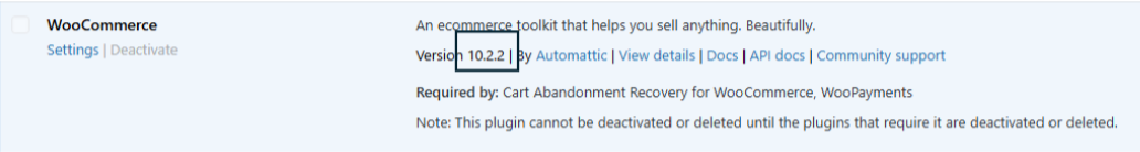 If already installed, please go down and check which version of WooCommerce you have. You will need it later.