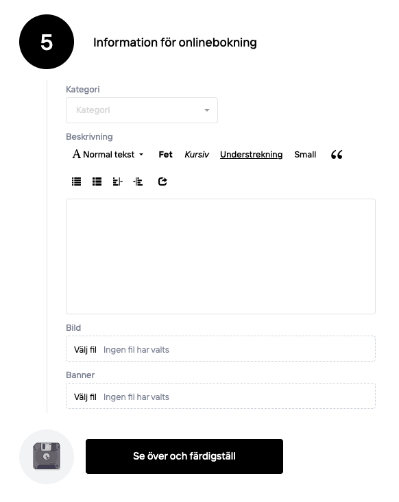 The description field will be visible for the customer online when they make their booking. So here you should type in the information that is important for the customer to be aware of.